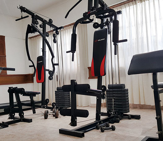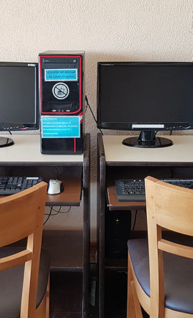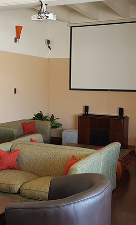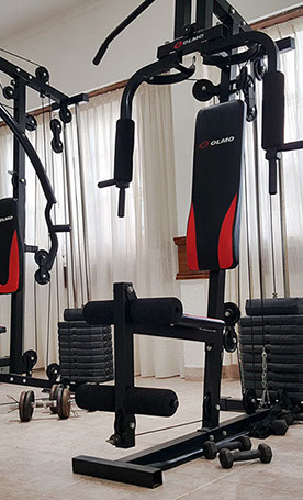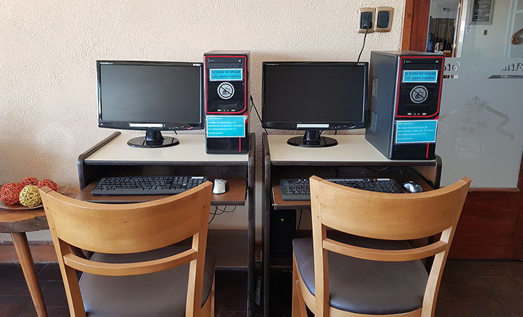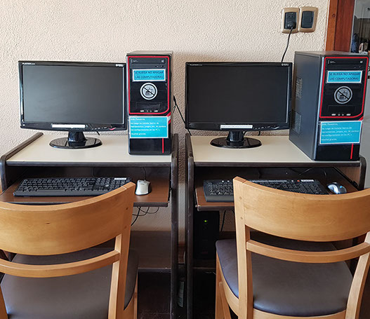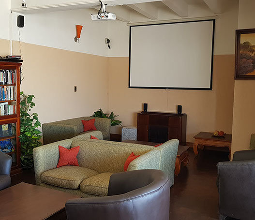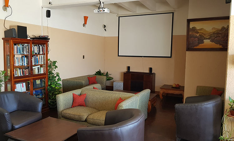 This room contains a library with a vast variety of books from different types of authors. Cinema room equipped with big screen (1.5 x 2 mts) and surround sound 5.1. Desktops. Comfortable armchairs and sofas overlooking at the sea which will make you feel on the beach.