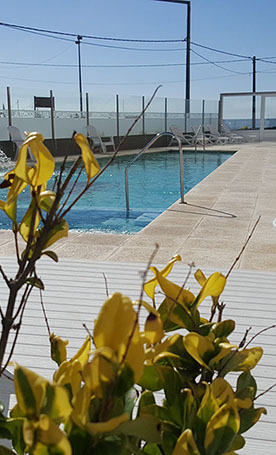 Outstanding sea view solarium with a unique heated swimming pool with Scottish showers and integrated jacuzi tub designed for providing our guests highest relax and pleasure.